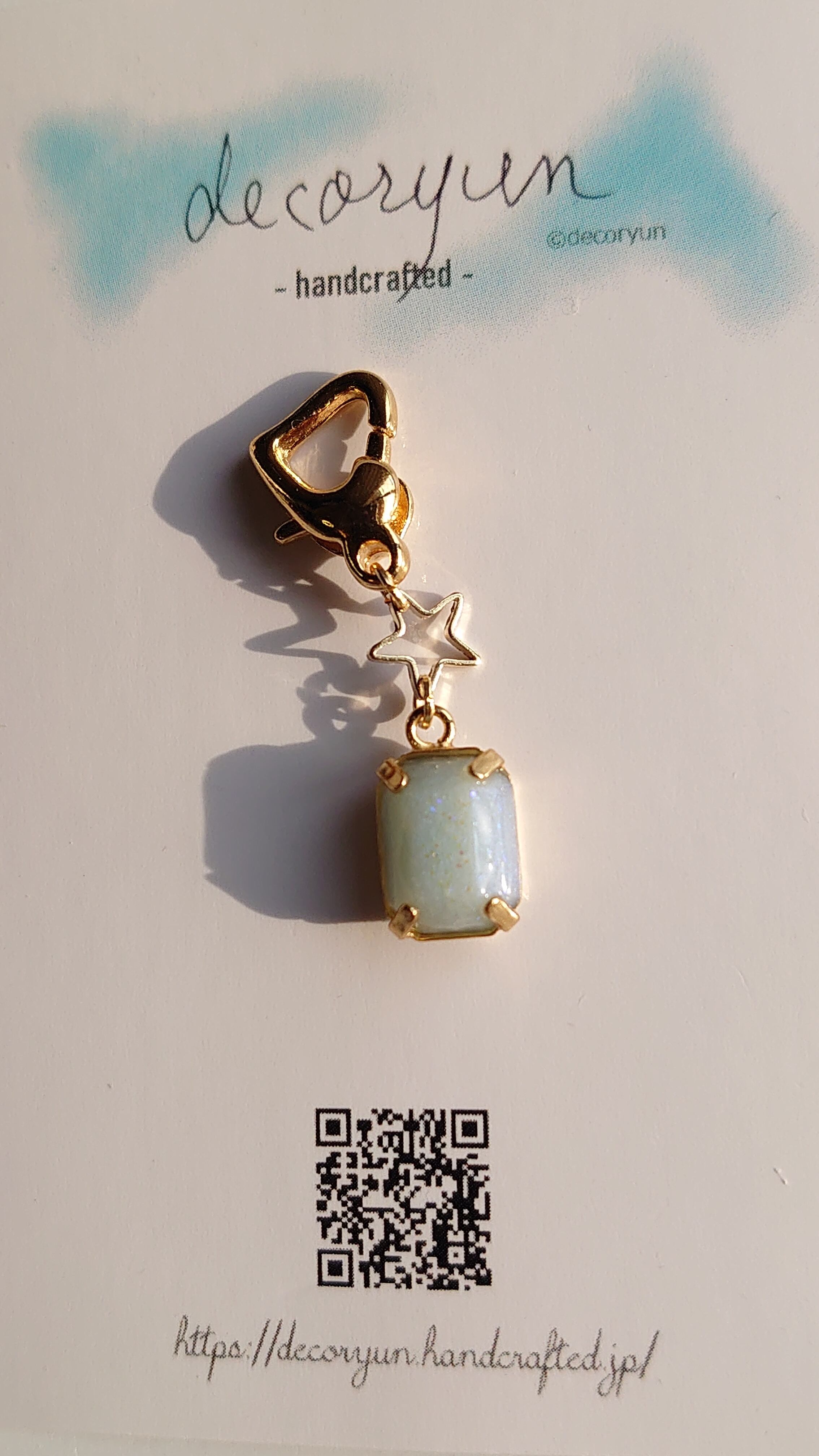 チェーン部に星を使用し、ホルダー部はハートのナスカン(Gold)を採用しました。