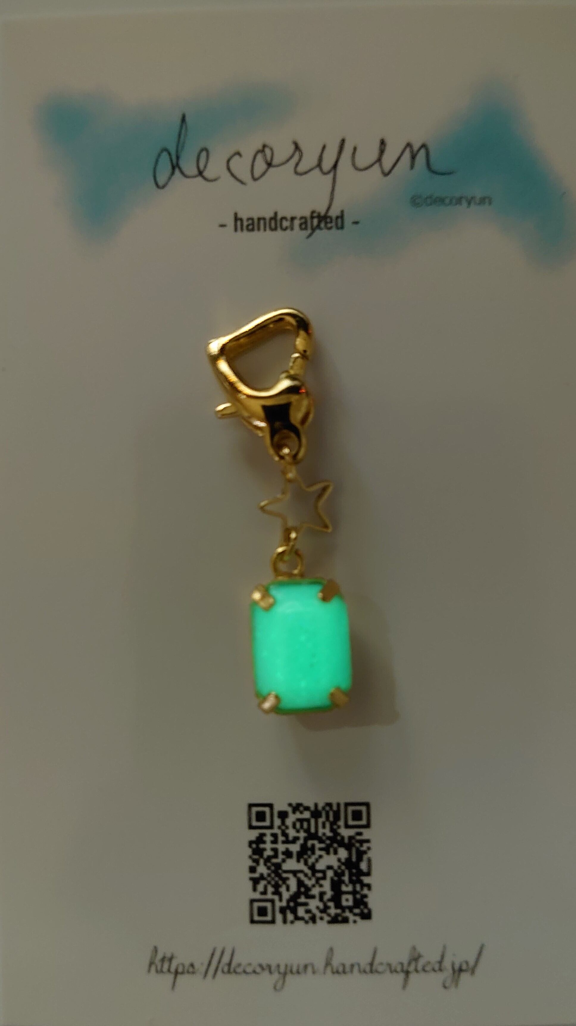 ブルーの蓄光を使用した暗闇で光るチャームです♪