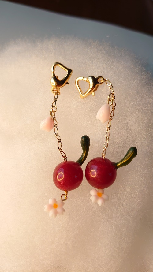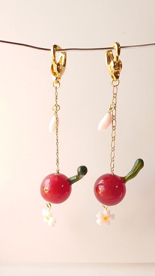 さくらんぼと春をイメージした深紅のチェリーチャームです。