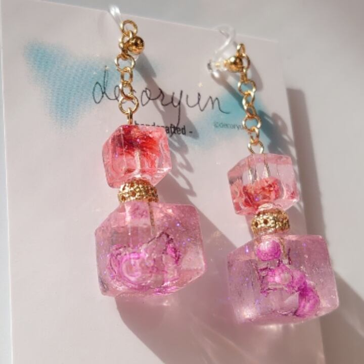 イヤリング/レジン製/銀色(金具パーツ)/フラワー入り