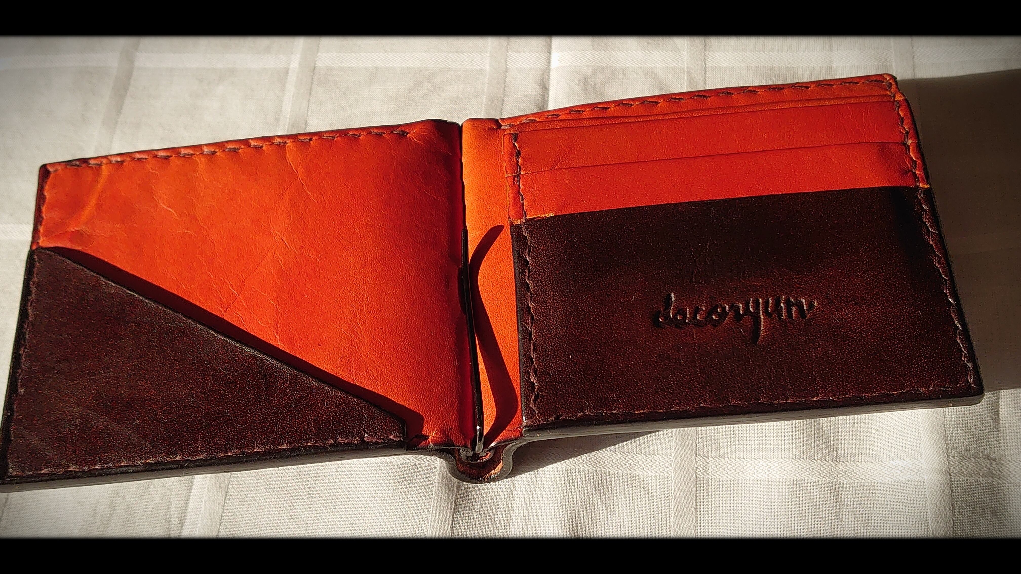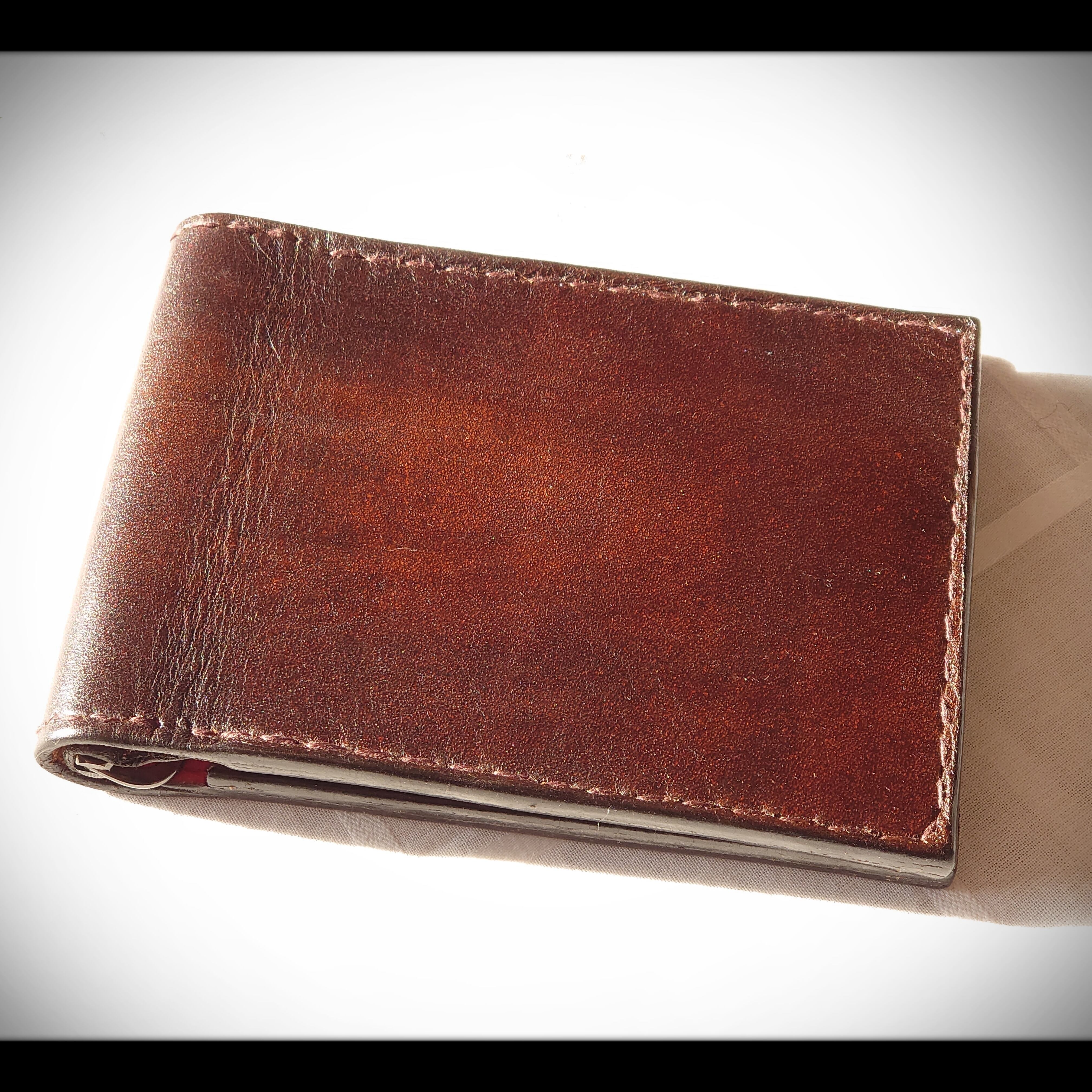 表面着色、裁断、縫製、磨き、刻印ともに手作りです(ブランド刻印はレジンで自作しています)。