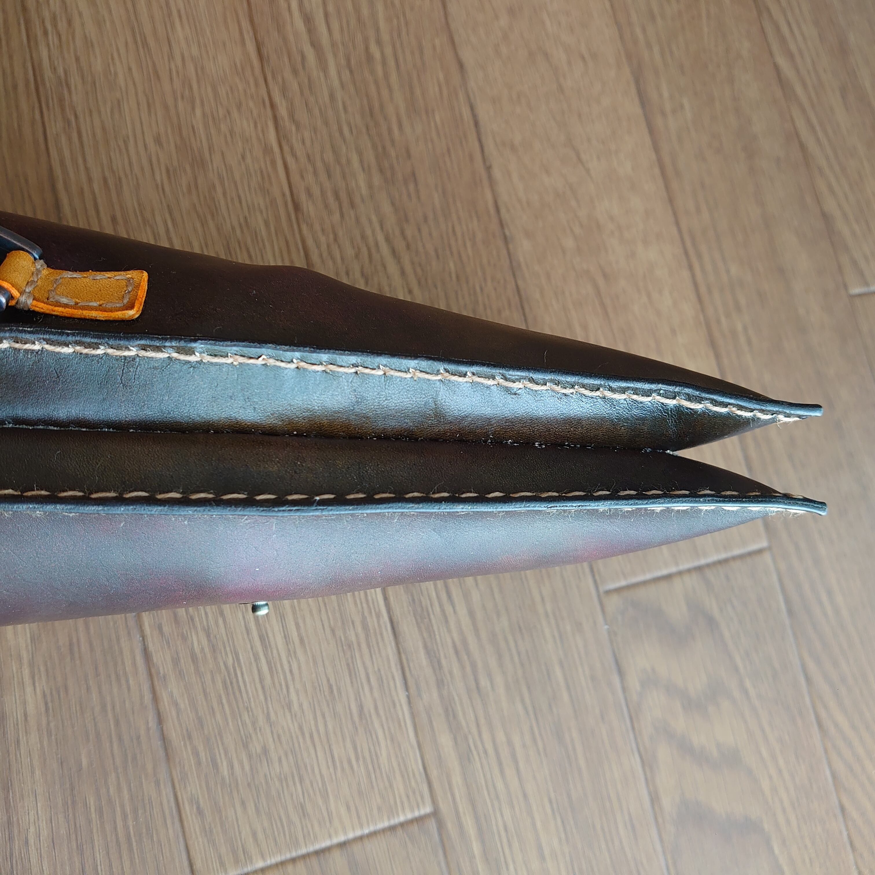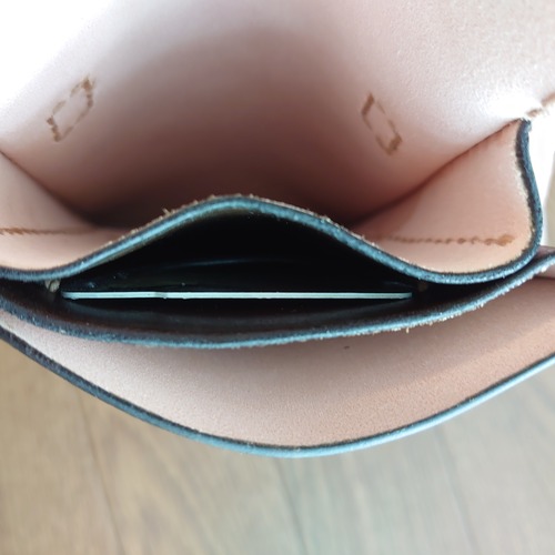 ヌメ革なので見た目よりも堅めでしっかりしています。