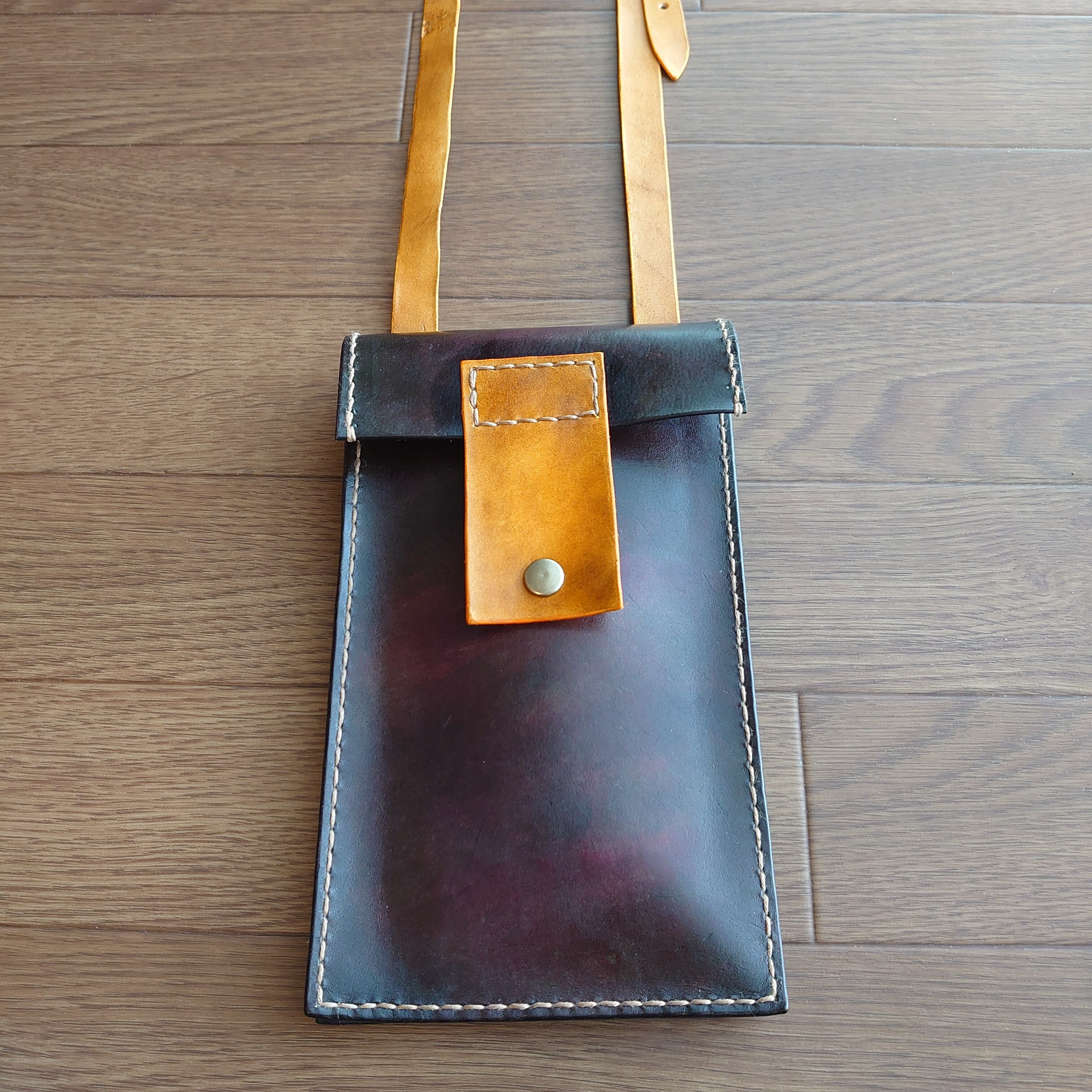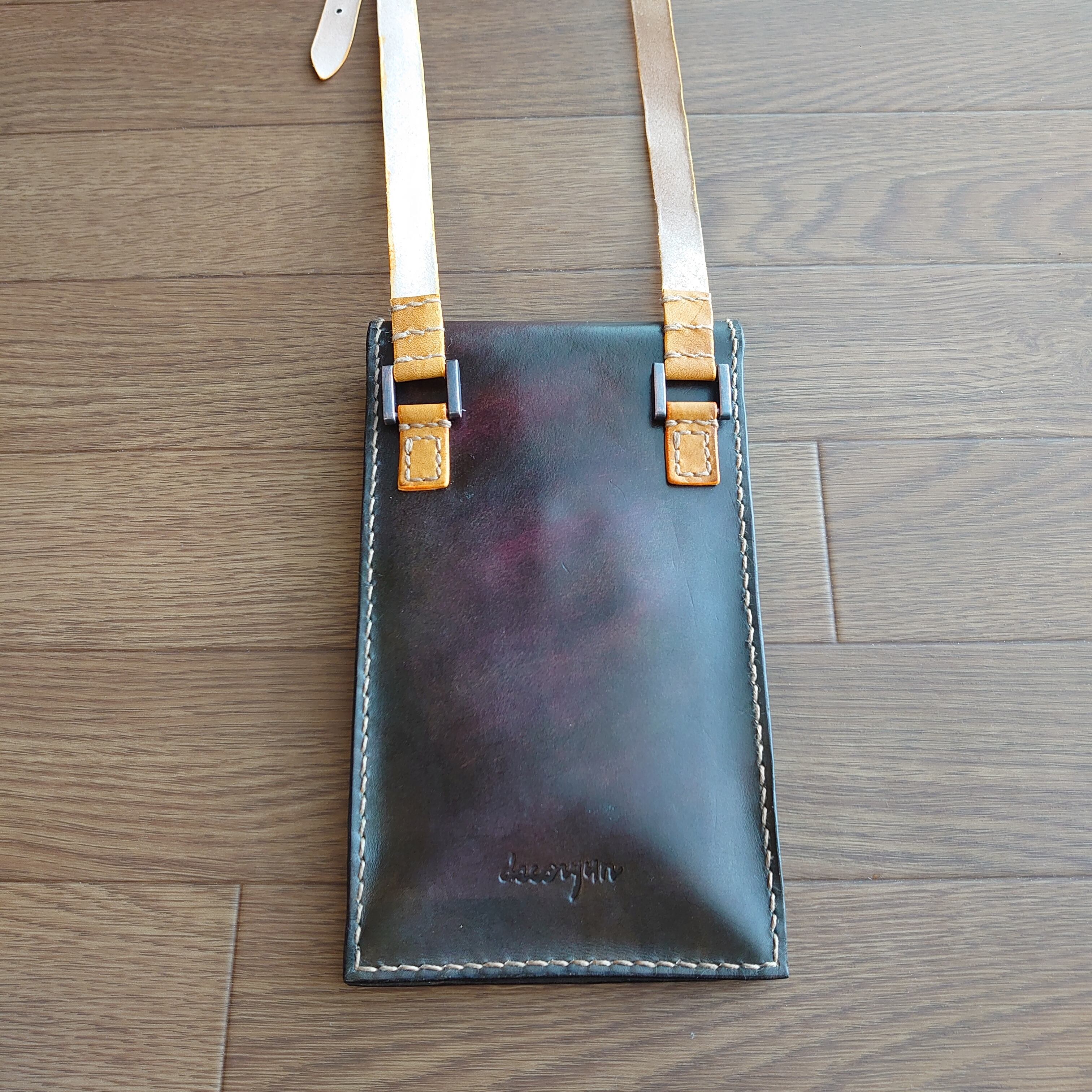 ちょっと小さめなサコッシュ。前にはスマホを、後ろには財布を収納できます。